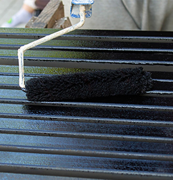 První a druhý nátěr problematických a špatně dostupných míst (hrany, klempířské spoje, rohy), po prvním nátěru štětcem, následuje první nátěr válečkem, po zaschnutí se tento postup opakuje :