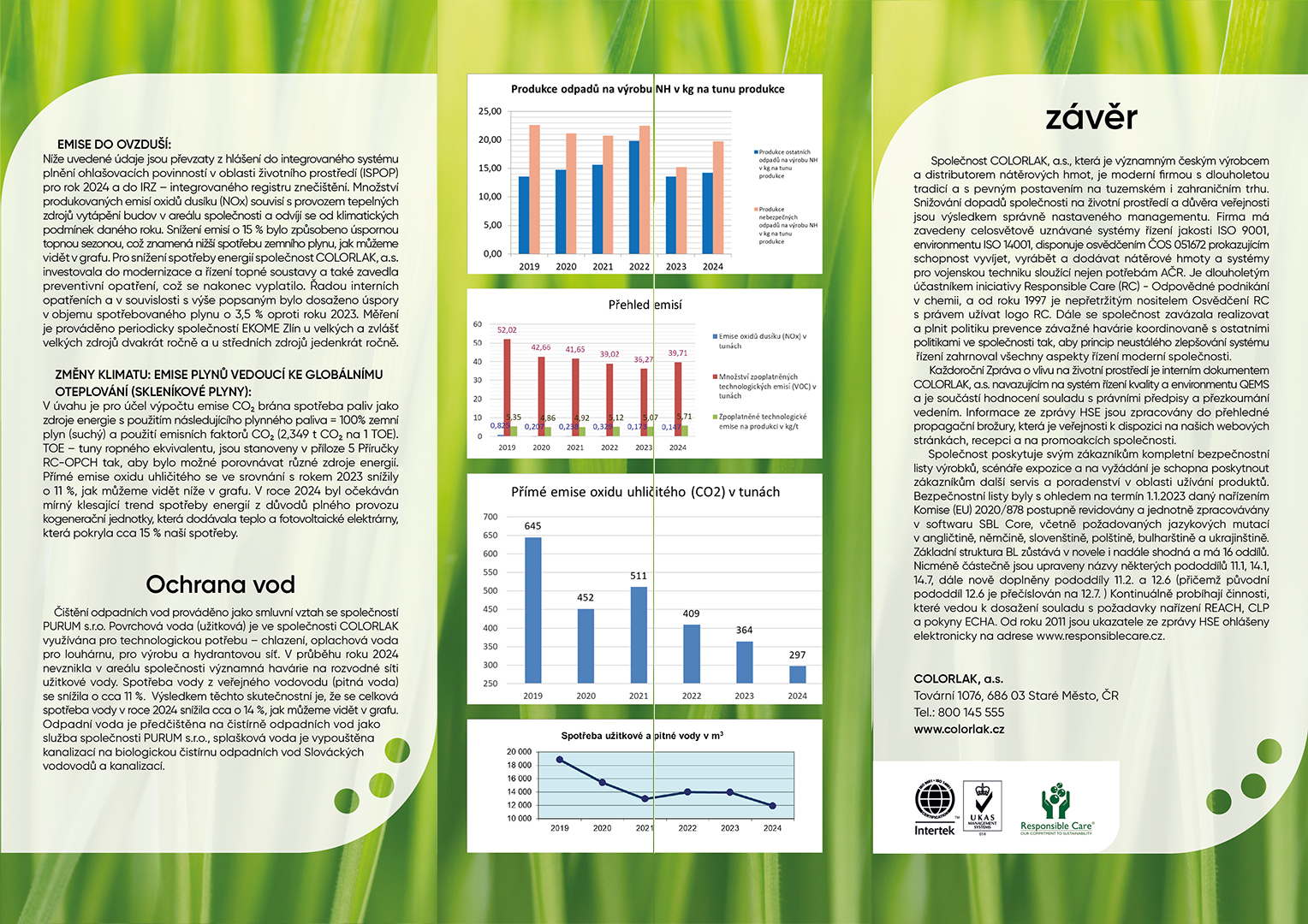 Zpráva společnosti COLORLAK, a.s., o vlivu na životní prostředí – 2024