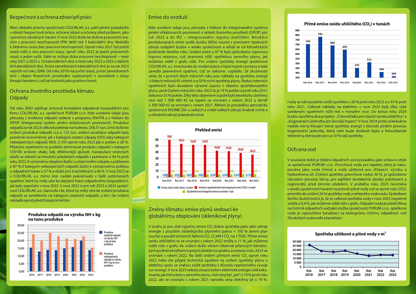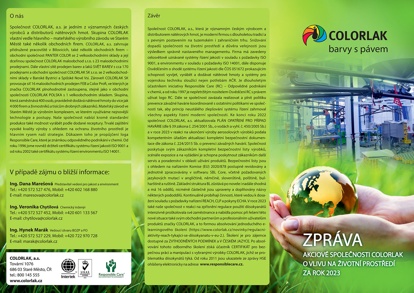 Zpráva společnosti COLORLAK, a.s., o vlivu na životní prostředí – 2023