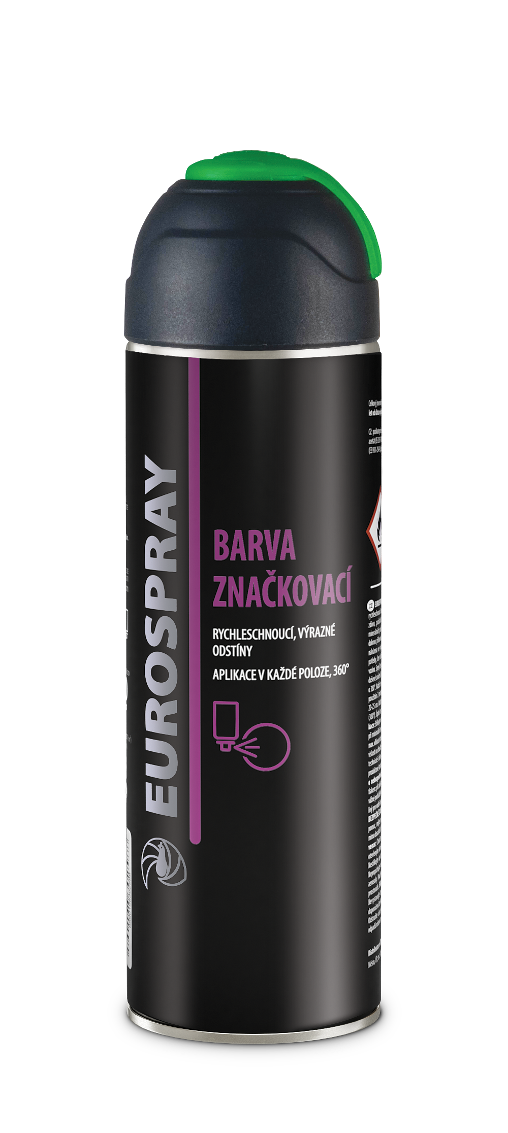 EUROSPRAY BARVA ZNAČKOVACÍ je matná akrylátová rychleschnoucí barva, speciálně určená pro dočasné značení na zdivu, podlahách, asfaltu (vozovce), betonu, dřevě, minerálních podkladech apod. v exteriéru i interiéru.