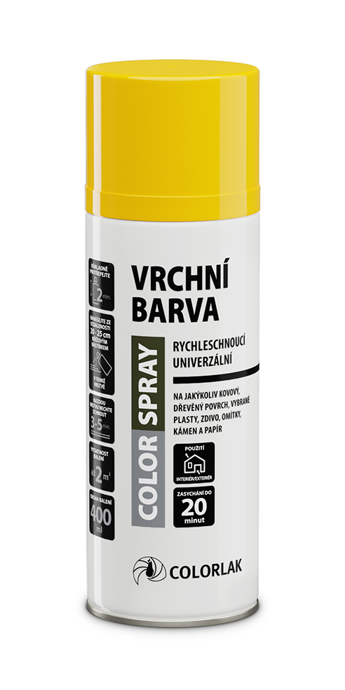 - COLORSPRAY VRCHNÍ BARVA je univerzální akrylátová rychleschnoucí lesklá (matná) barva, pro vnitřní i venkovní použití.