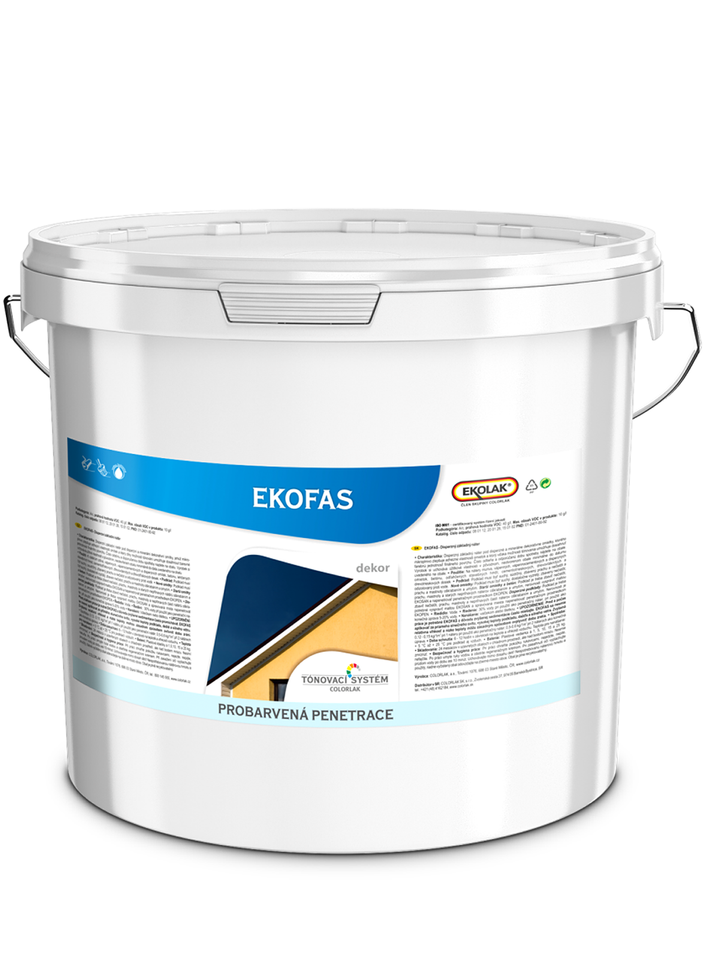 - EKOFAS je zrnitá disperzní barva určená jako základní a vyrovnávací probarvený nátěr pod disperzní, silikonové a mozaikové dekorativní omítky, jejíž mikroplnivo zlepšuje adhezní vlastnosti omítek.