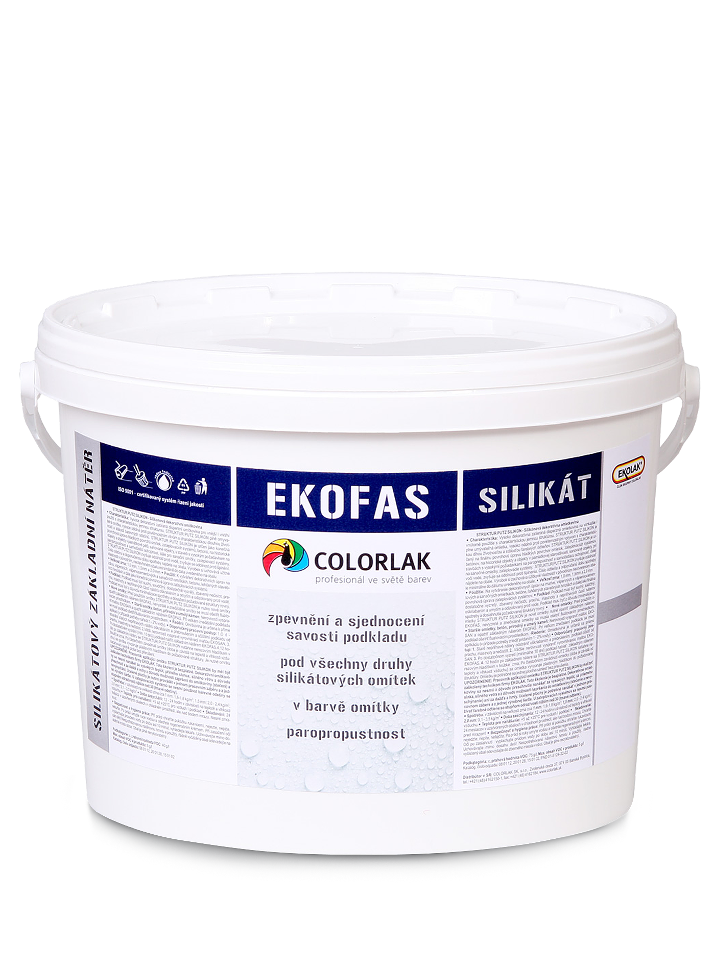 - EKOFAS SILIKÁT je zrnitá silikátová barva určená jako základní a vyrovnávací probarvený nátěr pod silikátové dekorativní omítky, jejíž mikroplnivo zlepšuje adhezní vlastnosti omítek. Díky možnosti tónování umožňuje dosáhnout barevné jednotnosti finálního povrchu.