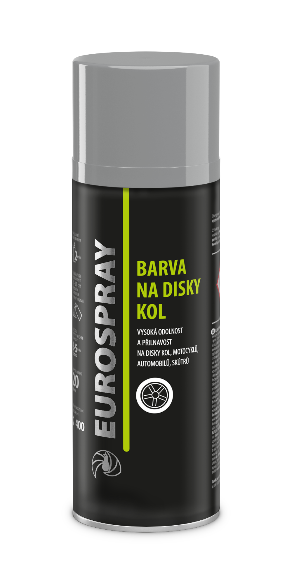 - EUROSPRAY BARVA NA DISKY KOL je speciální rychleschnoucí akrylátová barva určená především pro lakování i opravu ocelových nebo slitinových disků (ráfků) kol automobilů, motocyklů, skútrů, jízdních kol, koloběžek apod.