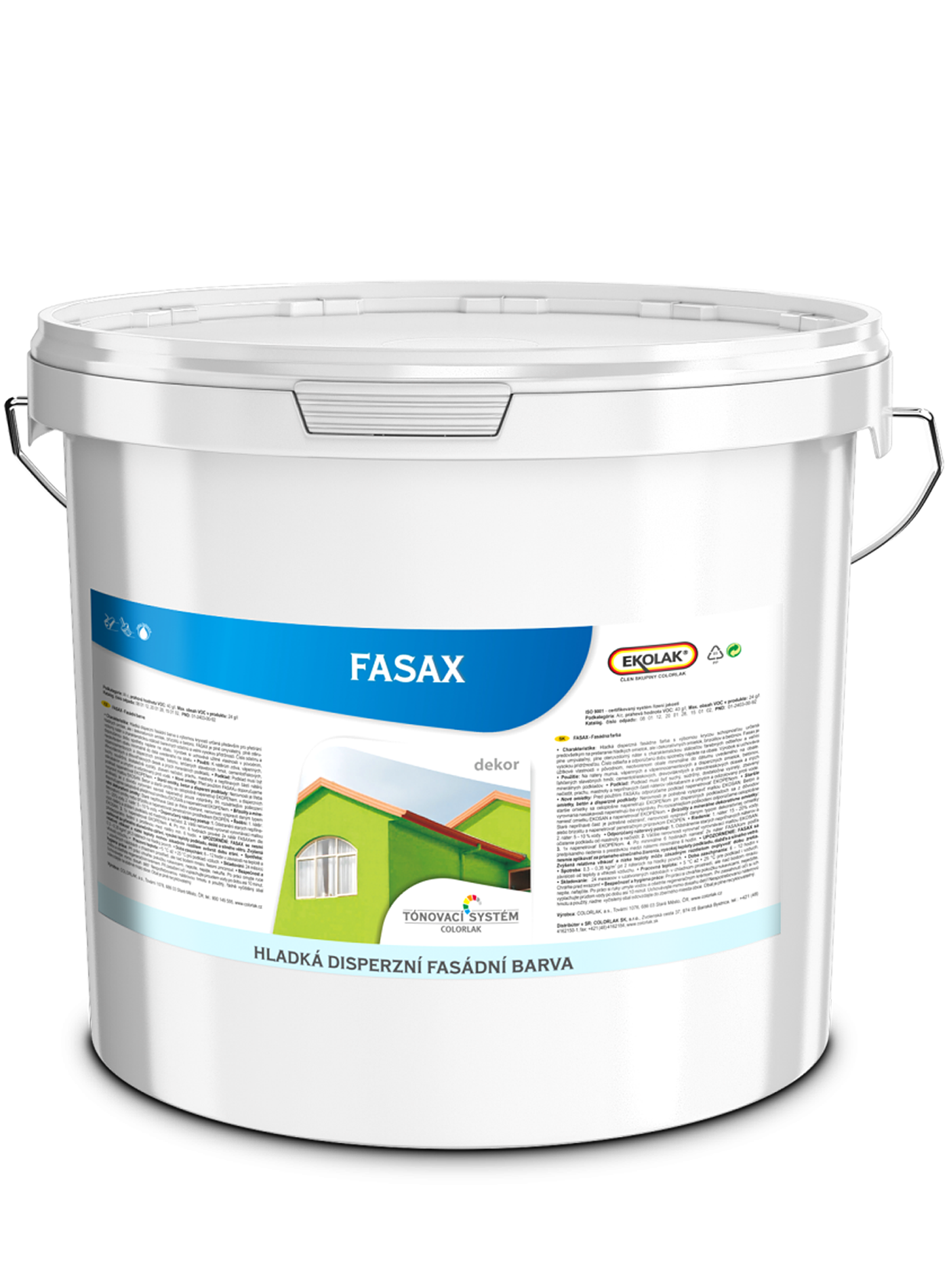 FASAX BÁZE je profesionální hladká matná fasádní barva určená pro tónování v tónovacím systému TSCL DEKOR. FASAX je disperzní fasádní barva s výbornou