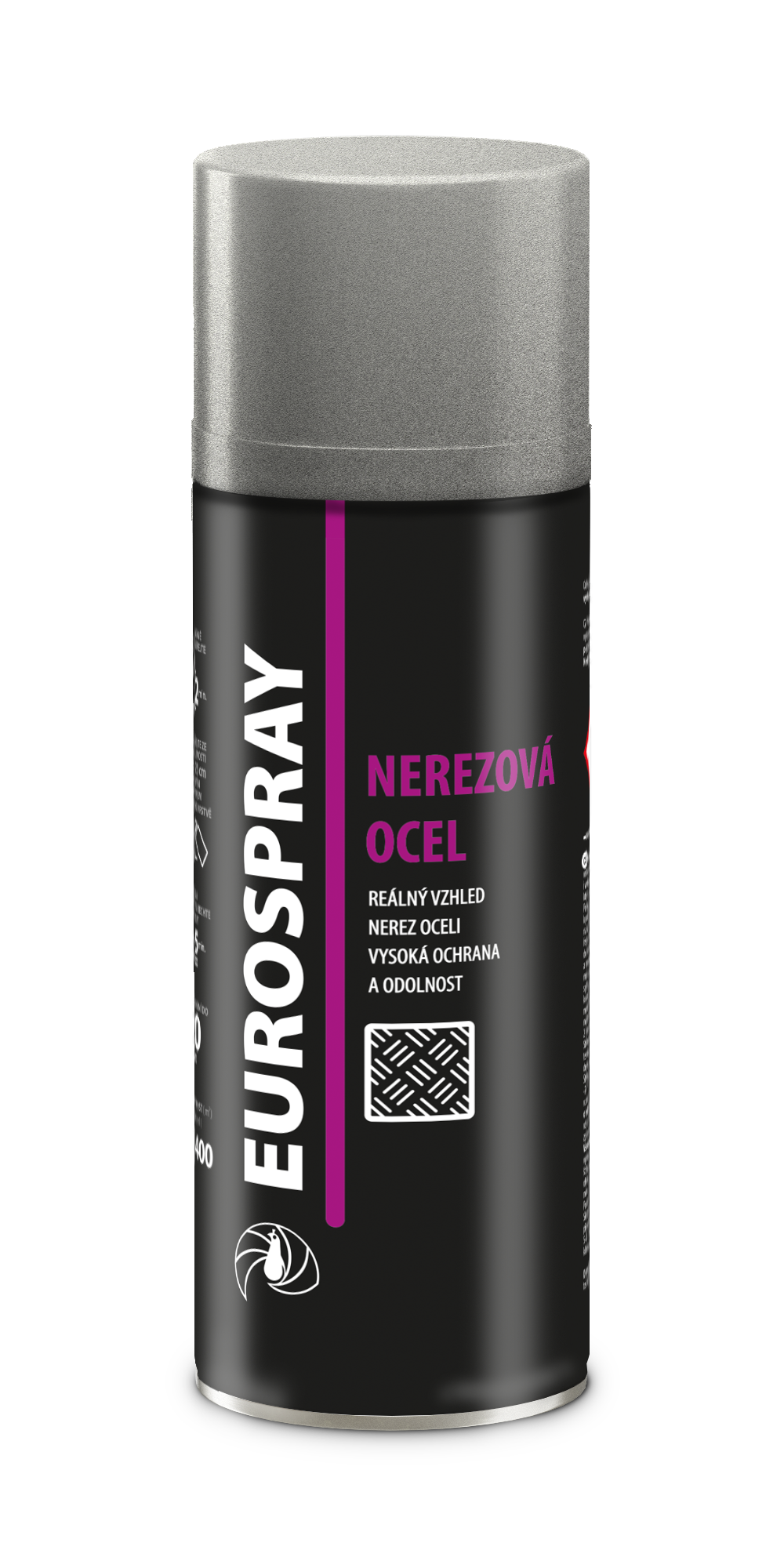 - EUROSPRAY NEREZOVÁ OCEL je rychleschnoucí antikorozní jednovrstvá (samozákladující) barva 3v1.